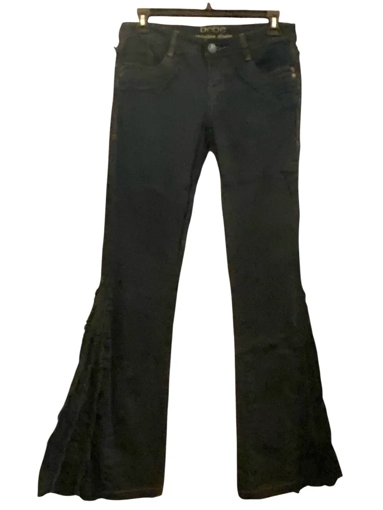 Super dark wash cool distressed features on the bell/ Flare c3.5203125 7.5” rise 31”inseam 28.5-30... Show more