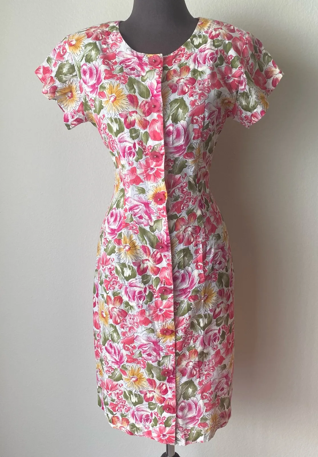 La Belle sz S pink Floral milkmaid VTG‎ prarie mini dress - $34 - From Thrift