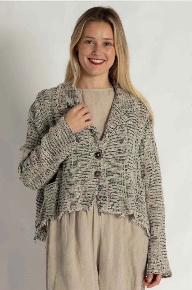 Stay stylish with this elegant soft La Bottegga di Brumella tan and white cardigan with wooden buttons. Made from various techniques such as looming and twisting yarns together. Approximate measurements for your guidance only: ptp 22” stretch to 24. Length 20”. Perfect for layering and adding a touch of sophistication to any outfit. PFSF home. All sales photographed. XL Bin