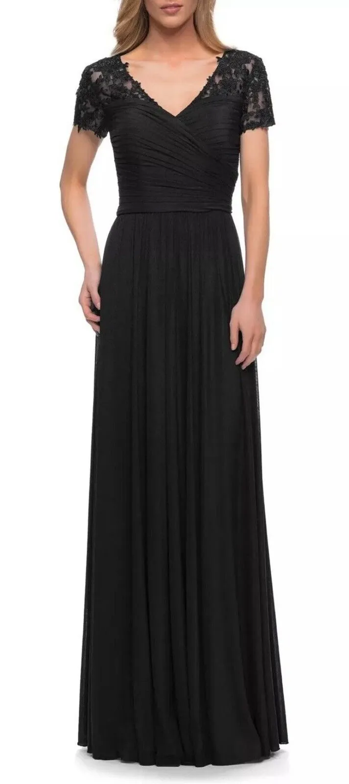 This stunning black gown by La Femme is perfect for any formal occasion, from weddings to cocktail p... Show more