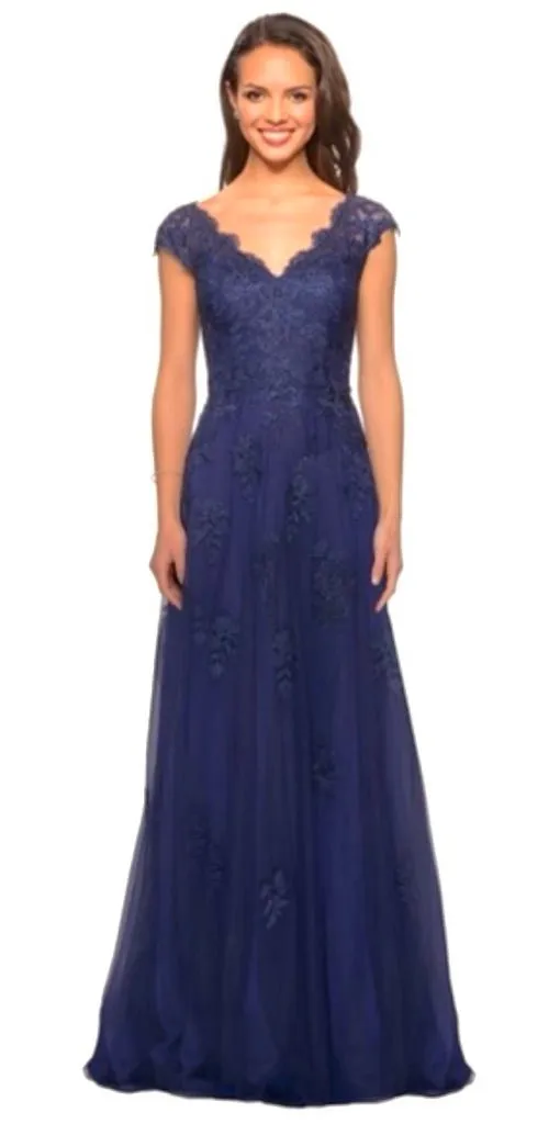 La Femme Marine Blue Cascading Embellished Lace Beaded Occasion Dress ~ brand new with tags ~ scal... Show more