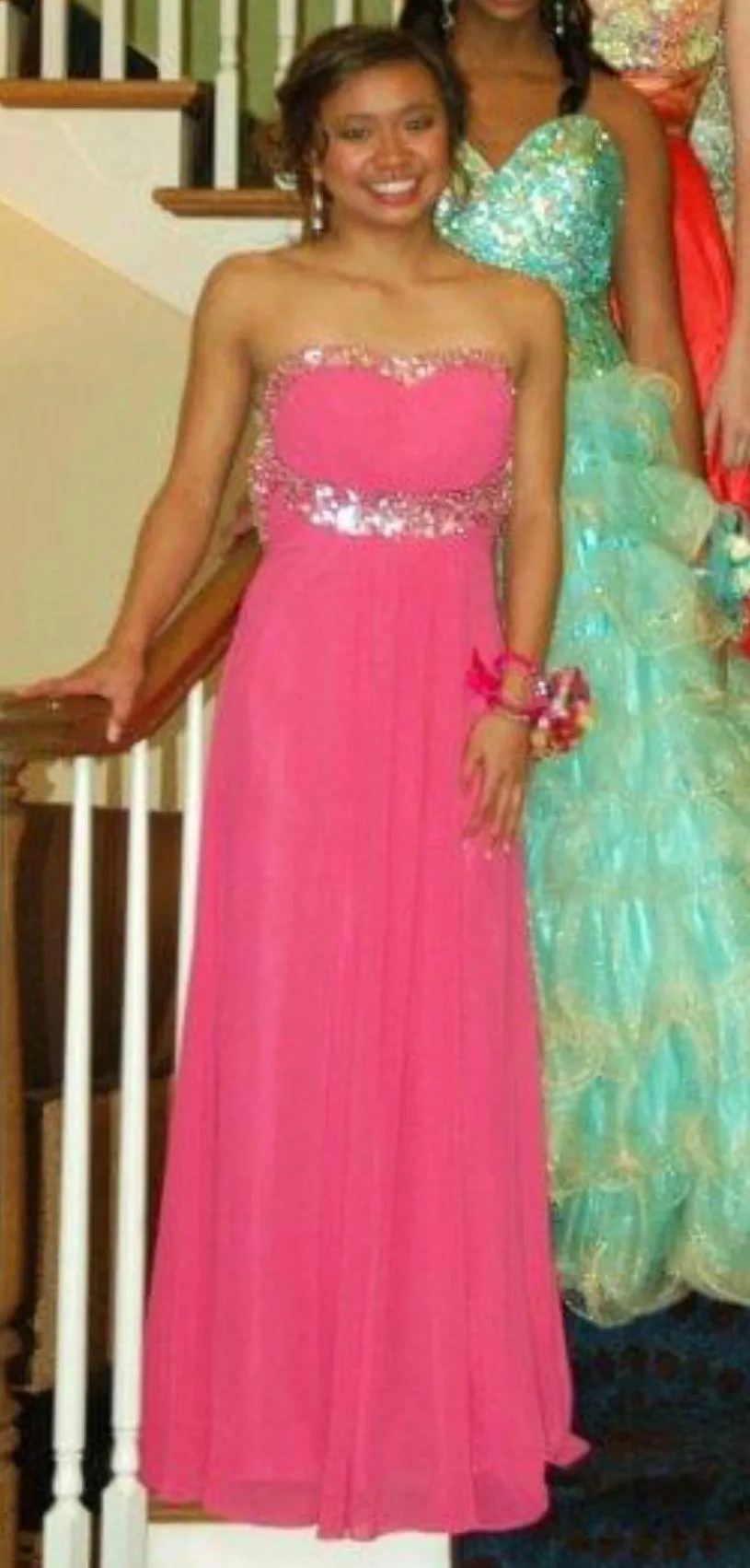 Worn once. I’m 5ft tall so it was hemmed but I wore 3 inch heels. Open cut back. Some beading may ne... Show more