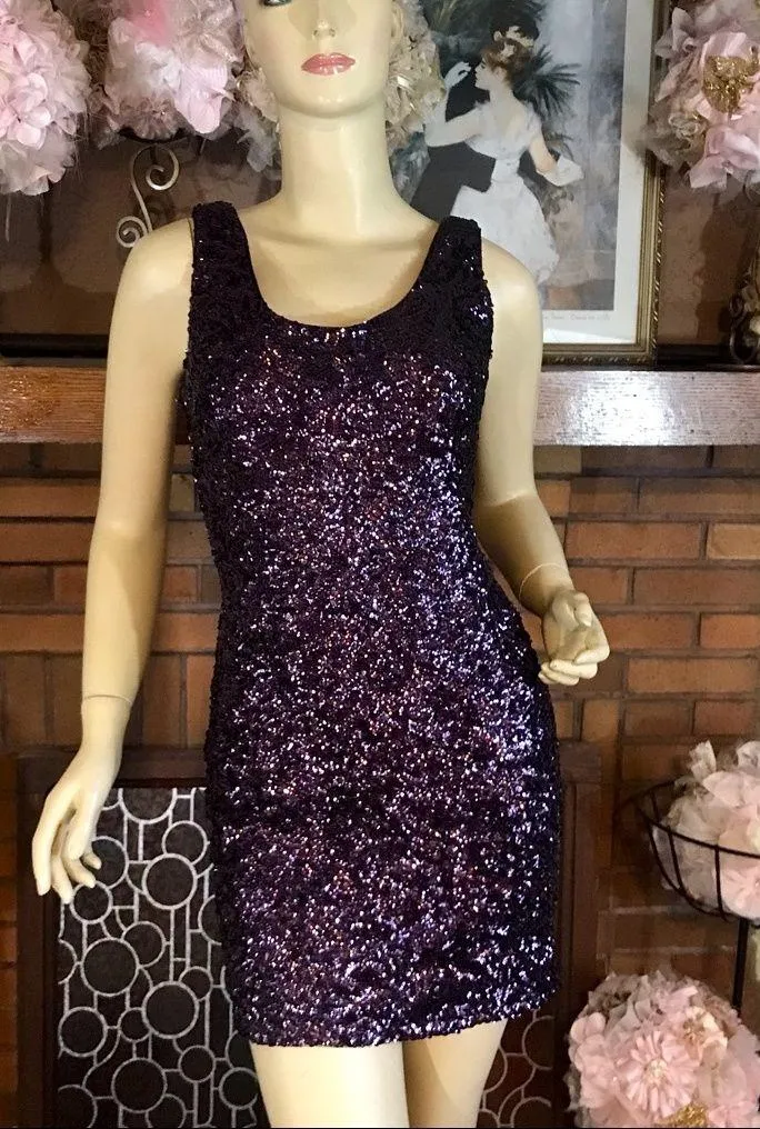 This listing is for the dress pictured. La Femme -purple -sequin -body con -mini -zipper closure -l... Show more