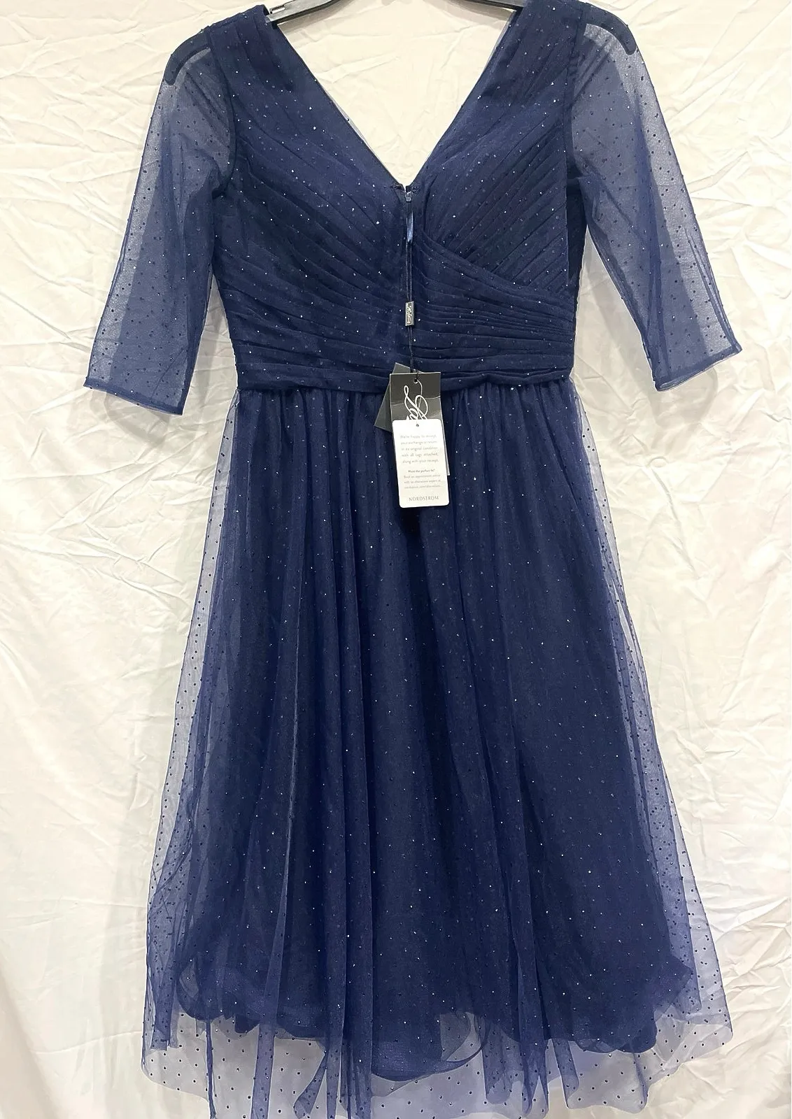 Plunging V-neck Front and Back Zipper Back opening with eye hook Rusche Diagonal Bodice Padded Silho... Show more
