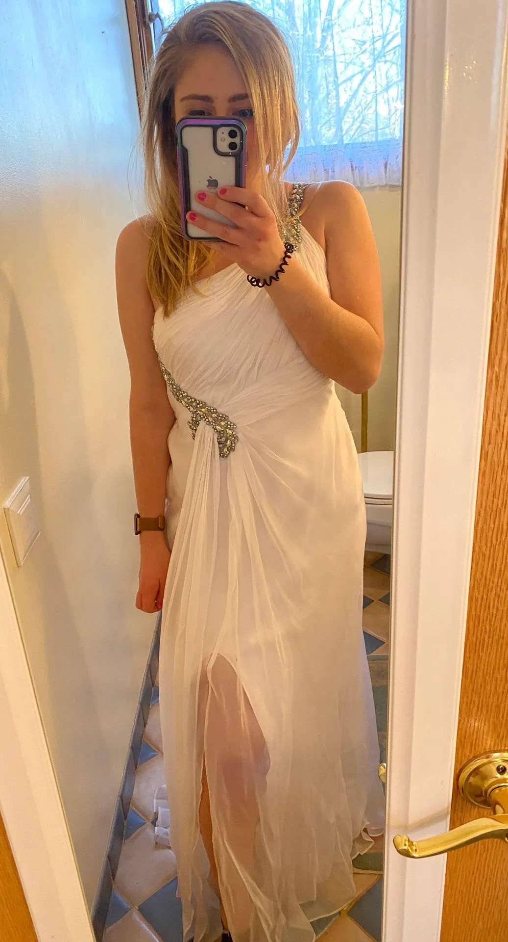 Worn once Good condition The back chiffon is not bright white on the inside Bought from Saks Fifth... Show more