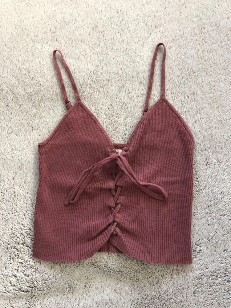 *One Size* but fits like a small. Adjustable straps on back and very cute! Burnt pink. Only worn onc... Show more