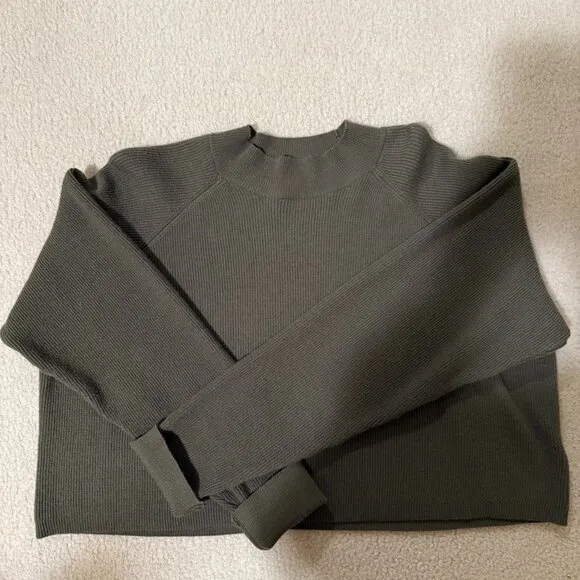 LA Hearts cropped, boxy, mockneck sweater in olive green in size L Size L - $25 - From Simply