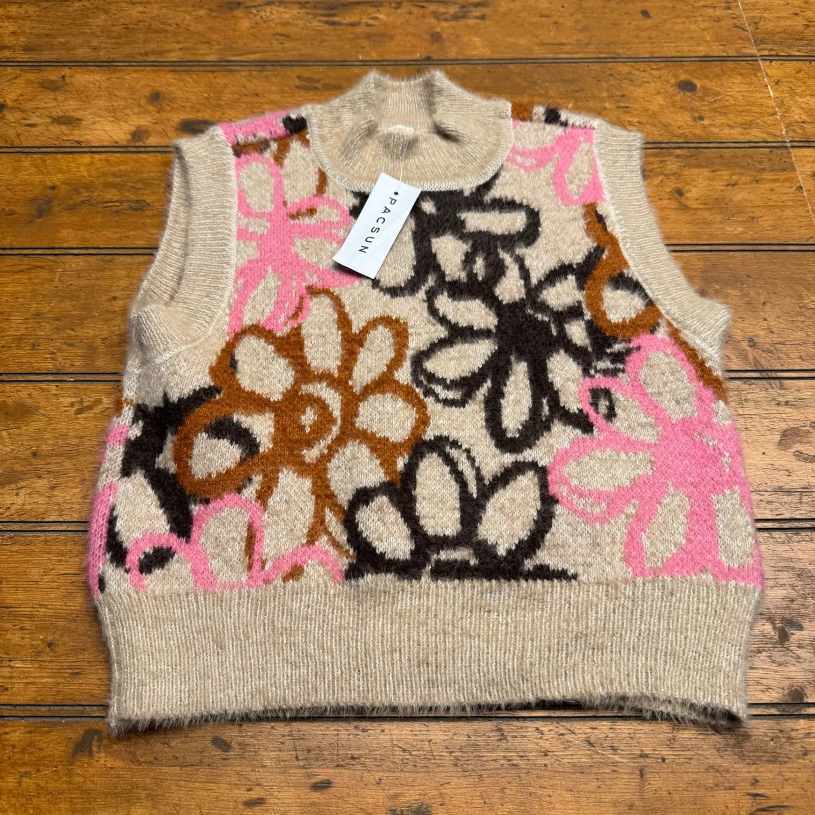 LA Hearts tan knit vest with a bold floral print. This sleeveless top features a mock neckline and a... Show more
