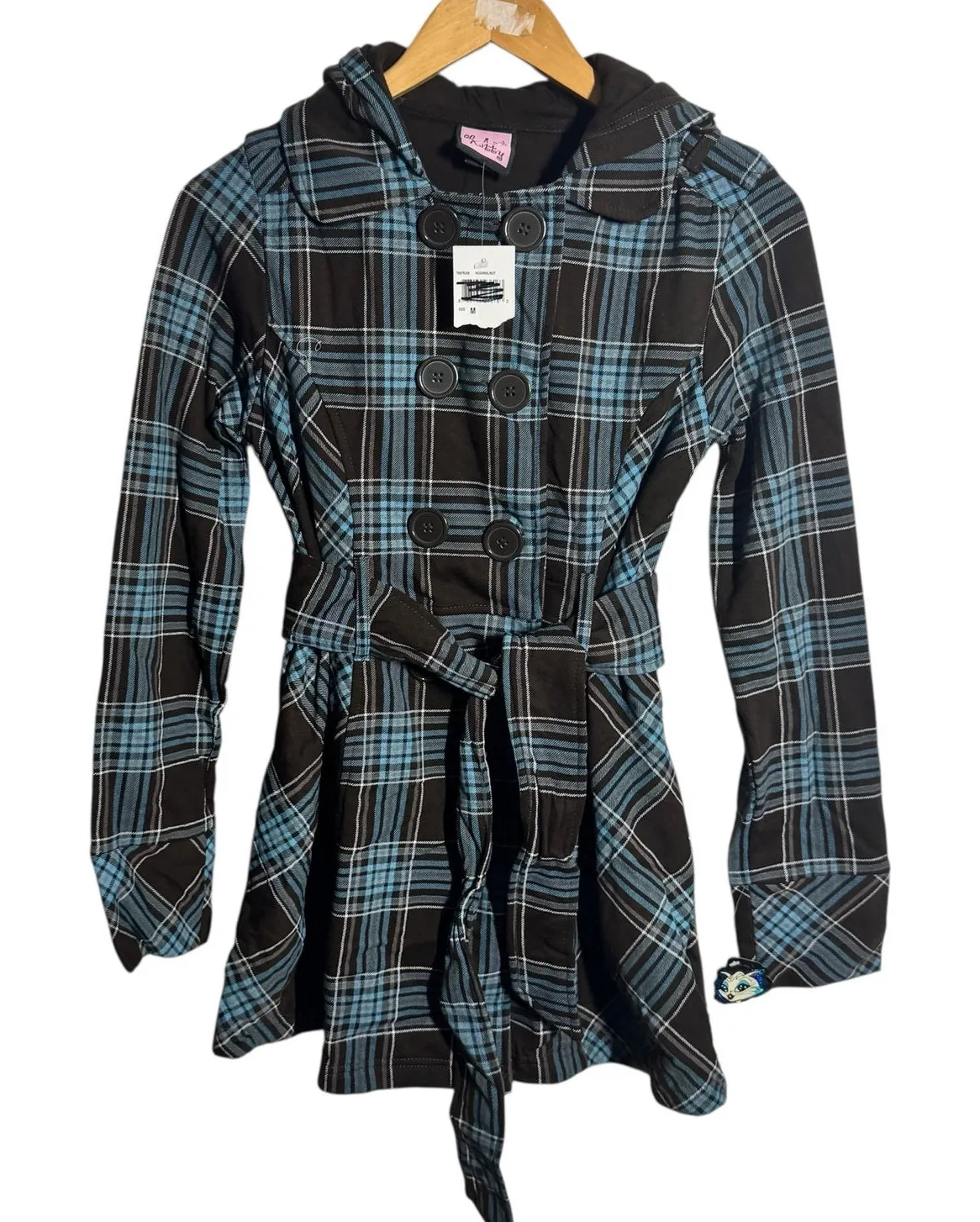 LA Kitty Y2K Hooded Jacket Juniors M Brown Blue Dead Stock Preppy Plaid Pocket Size M - $25 New With Tags - From Hannah