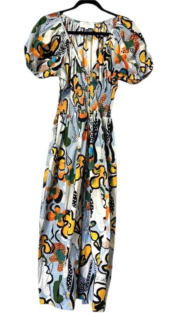 La Ligne Celina Dress Floral Puff Sleeves Womens Small Blue Green Yellow New - $205 - From Hanna