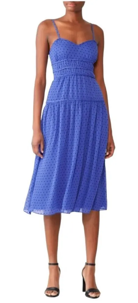 Lightweight georgette and delicate polka dots bring an air of romance to this La Maison Talulah dress. It is in excellent pre-owned condition. Features: • Polka-dot print • Sweetheart neckline • Adjustable straps • Fit & flare silhouette • Midi length • fall, spring, summer • polka-dot • dry clean • Pleated, banded waist detail • Hidden back zipper closure • Fully lined • Dry clean Measurements: armpit to armpit 14.5 in / 37 cm waist side to side 12 in / 30 cm length 45 in / 114 cm Condition: Pre-Owned Like New All offers welcomed! ❤️ Professional seller, smoke free home and same or next day shipping. Like items for price drops. Receive the 30% off bundle discount when you purchase two or more items. designer, luxury, colorful, silky, georgette, slimming, midi, maxi, flowy, polk-dot, polka dot, casual, classic, classy, fit and flare, fit & flare, chic, sophisticated, elegant, glam, glamorous, party, wedding, cocktail, lightweight, comfy, vacation, travel, date night, night out, reception, holiday, Size S, small, summer, fall, spring, cruise, trendy, stylish, bright blue