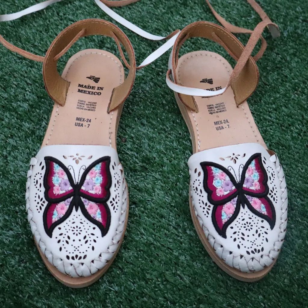 La Santa Art Mx Handcrafted, Leather Sandals with butterfly Embroidery Purple Size 7 - $30 - From pearl