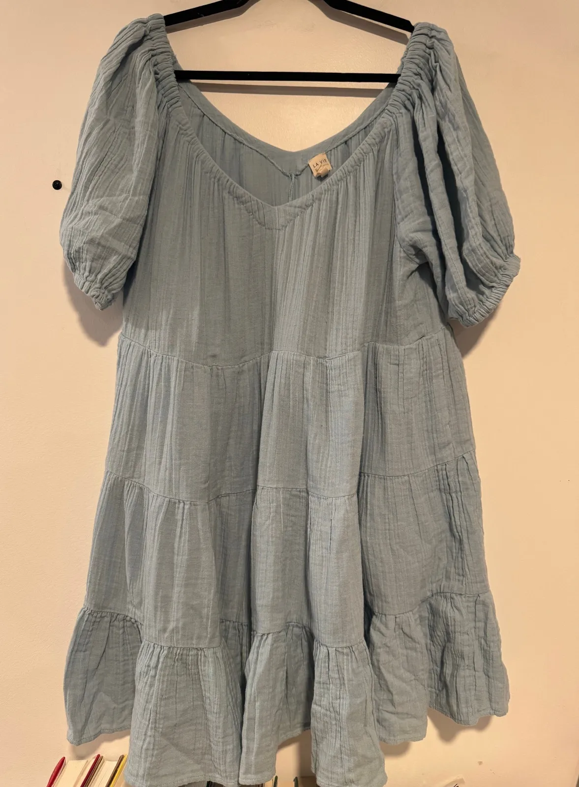 Drift into that soft, coastal-girl comfort with this La Vie Rebecca Taylor tiered gauze dress in a beautiful light blue. Women’s size Large. Features billowy puff sleeves, a flattering V-neckline, and a tiered silhouette that gives it that effortless boho flow. 100% cotton—perfect lightweight, breathable material. Great for vacations, brunch, beach days, or throwing on for an easy feminine look. Condition: Gently used. One faint mark on the back (shown in photos). No holes or major flaws. ⸻ FEATURES: • Brand: La Vie Rebecca Taylor • Women’s Size: Large • Color: Light Blue • Material: 100% Cotton • Style: Tiered / Peasant / Boho / Cottagecore • Puff elastic sleeves • V-neckline • Midi length • Pullover style • Lightweight gauze fabric ⸻ MEASUREMENTS (approx): • Pit to pit: 18.5” • Length: 32” • Waist: 19” across (elastic shoulder seam gives some flexibility)