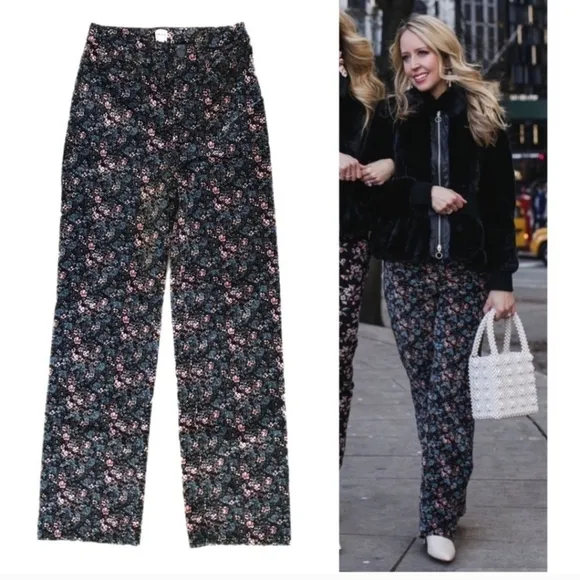 La Vie Rebecca Taylor Lisette Floral cotton Velvet High Waist Pants new Purple Size 25 - $78 - From Miriam