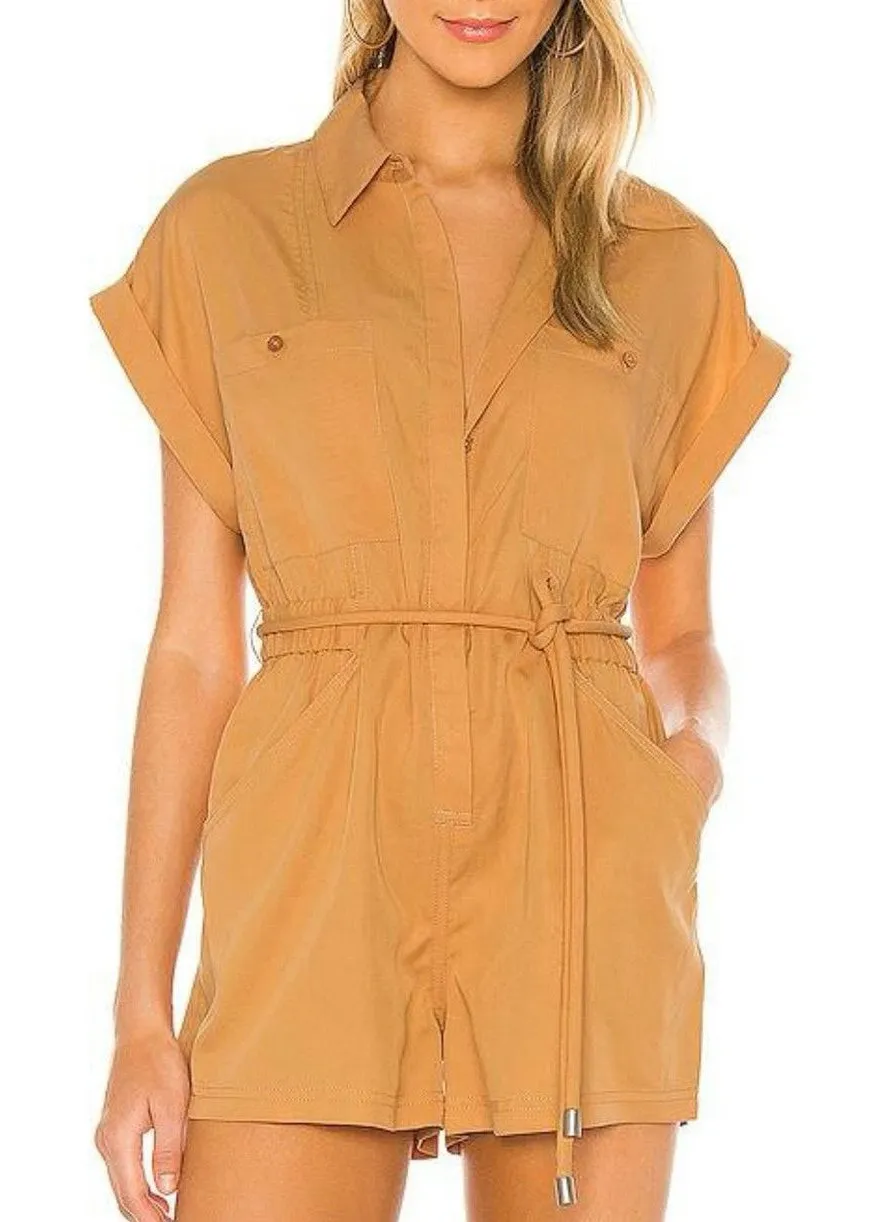 L’academie NWT Short Sleeve Button Front Romper size XL Short roll cap sleeves Collared neckline with button front closure Elastic side waist Removable rope belt Front pockets Rayon Small spot on collar as shown in photo Measurements approximate laying flat 19" bust, 17" waist stretches to about 19", 7" sleeve, 32" length, 2.5" inseam Classic, Beach, Coastal, Casual, Neutral, Clean, Travel, Spring, Girly, Cottage, Eclectic, Boho, Indie, Valentines, Date Night, coastal, beach, travel, tropical, Romantic, Girly, Eclectic, bachelorette, club, date night, night out, special occasion, holiday, Valentine’s Day, derby, concert, minimalist, vacation, travel, cruise, girls trip, resort, chic, birthday, event, winery, wine tasting, honeymoon, retro, vintage, pretty, feminine, romantic, engagement, Euro Summer, Picnic, Mediterranean, Neutrals, Club ready, Scandi, Euro, Polished, Rodeo, Maximalism, Botanical, Garden, Timeless, Ranch b12