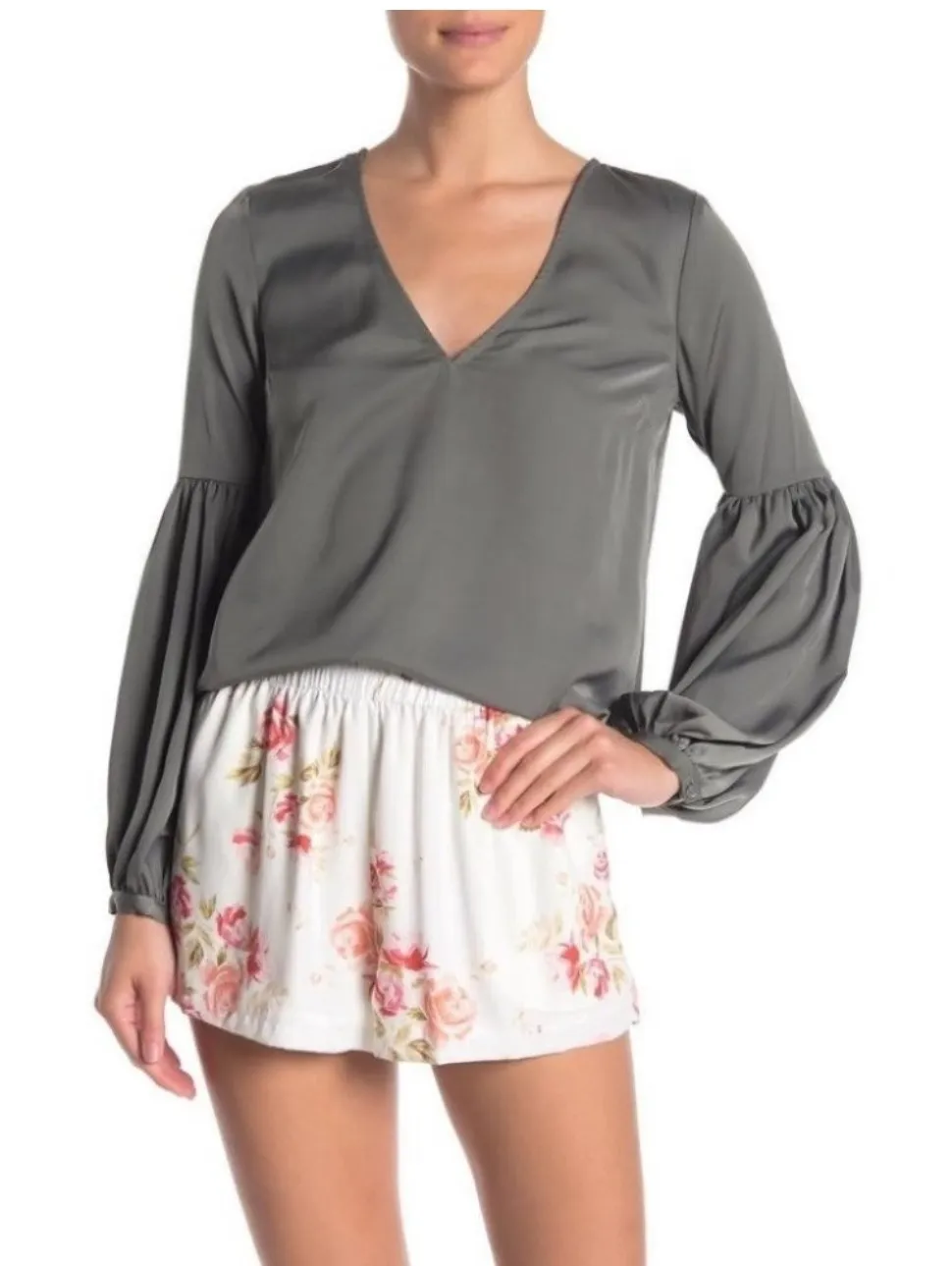 L'Academie Maya blouse, a versatile piece that effortlessly transitions from day to night. The olive green hue exudes understated elegance, while the flattering V-neckline adds a touch of allure. Long balloon sleeves create a dramatic silhouette, adding a modern twist to a classic design. Imagine yourself wearing this blouse to a sophisticated brunch, a chic office meeting, or a stylish evening event. Color: Green Type: Blouse Department: Women Style: Basic Material: Satin, Polyester Neckline: V-Neck Sleeve Length: Long Sleeve Sleeve Type: Balloon Sleeve Pattern: Solid Features: V-Neck, Long Sleeve, Satin Fabric, Lightweight, Elegant Fit: Regular Keywords: L'Academie, Maya Blouse, Olive Green Blouse, V-Neck Blouse, Long Sleeve Blouse, Balloon Sleeve Top, Satin Blouse, Elegant Top, Casual Blouse, Party Top, Women's Fashion, Designer Blouse