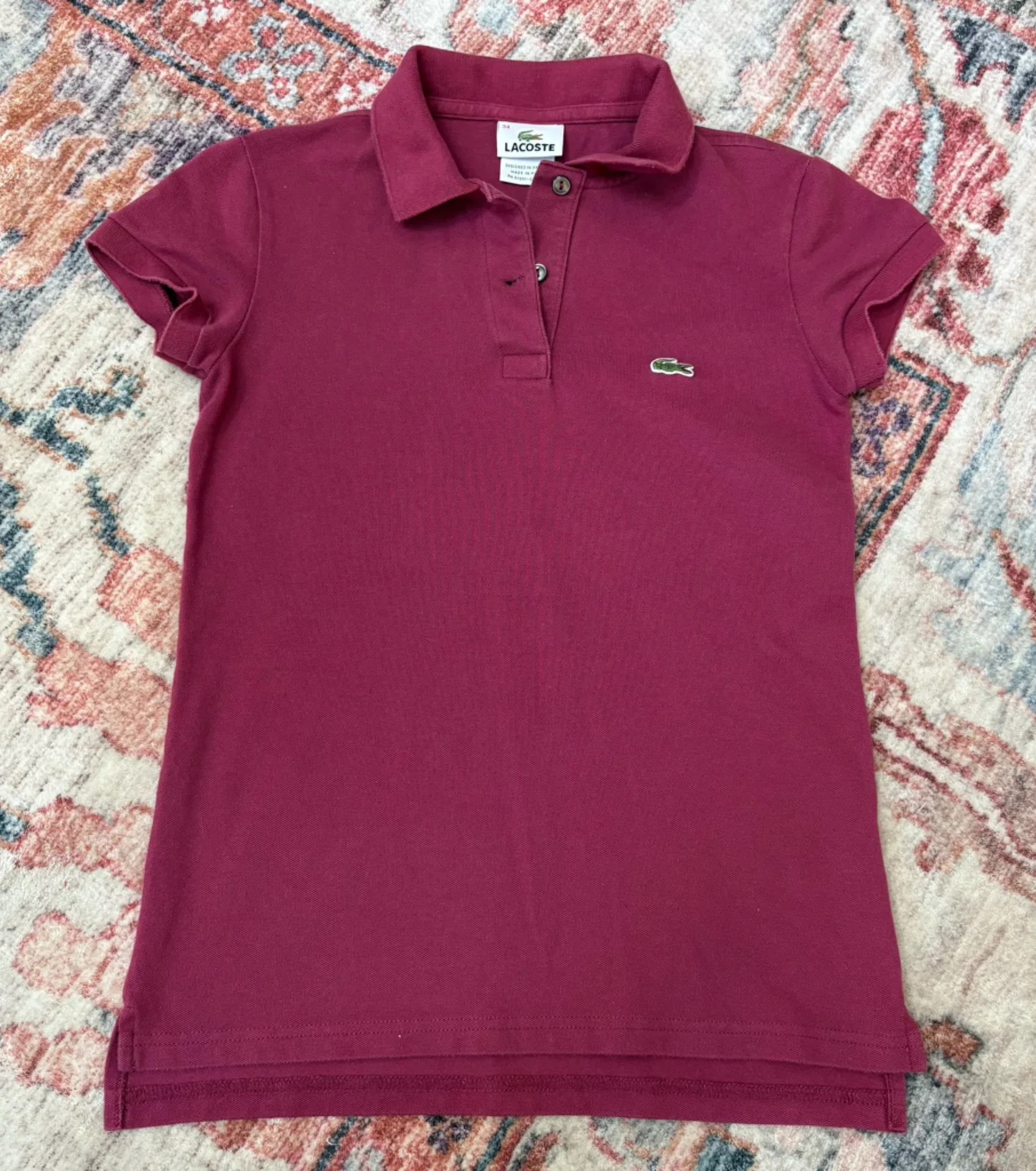 Lacoste Pink Polo Short sleeve Collard Classic alligator logo Cotton and Elastane Size 34 or XXS... Show more
