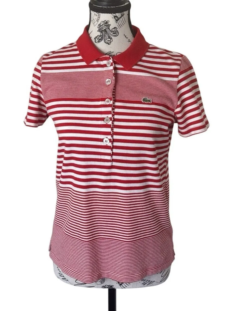 Polo-style shirt with classic collar and red and white stripes. Size 36 (equivalent to S). Made in P... Show more