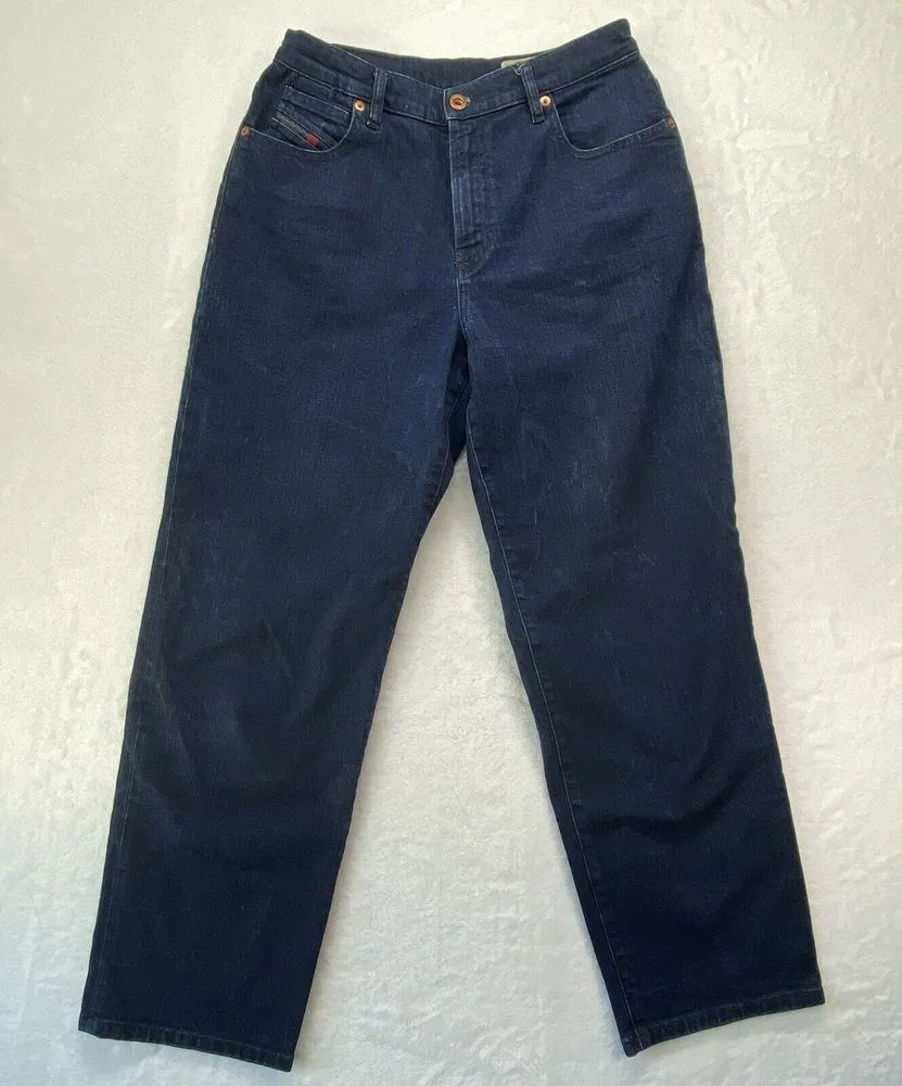 Step back into Y2K fashion with these stylish DIESEL NICLAH High Waist Regular Straight Jeans. Although tagged as size 29x32, these jeans measure 28x27, featuring a dark blue wash and a flattering high waist, perfect for adding a touch of vintage flair to your wardrobe. Features: * Brand: DIESEL * Style: NICLAH High Waist Regular Straight Jeans * Material: High-quality denim for durability and comfort * Color: Dark blue denim * Size: Tagged as 29x32, measures 28x27. Please refer to DIESEL's size chart for the perfect fit * Fit: Regular straight for a classic and versatile silhouette * Design: High waist for a flattering fit * Details: Traditional five-pocket styling, zip fly with button closure * Condition: Pre-owned in excellent condition