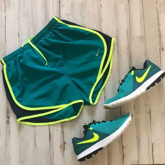 Bundle of Aqua and neon, yellow Nike, tennis shoes AND matching shorts worn maybe 2 or 3 times . sho... Show more