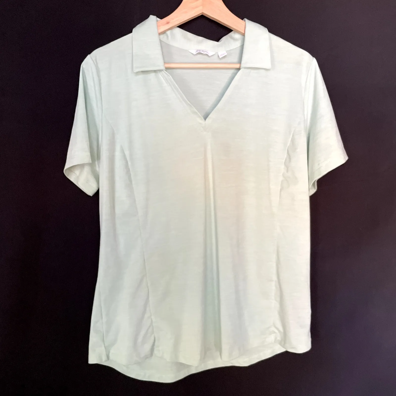 Elevate your golf game with this stylish Lady Hagen golf top! This women's size large, short-sleeved shirt features a flattering V-neck and a classic collar. Perfect for a day on the course or a casual outing. The comfortable fabric ensures a great fit and feel, allowing you to move freely and stay cool. This top is in excellent condition and ready to enhance your wardrobe. Don't miss out on this fantastic addition! Grab it now and get ready to turn heads on the green!