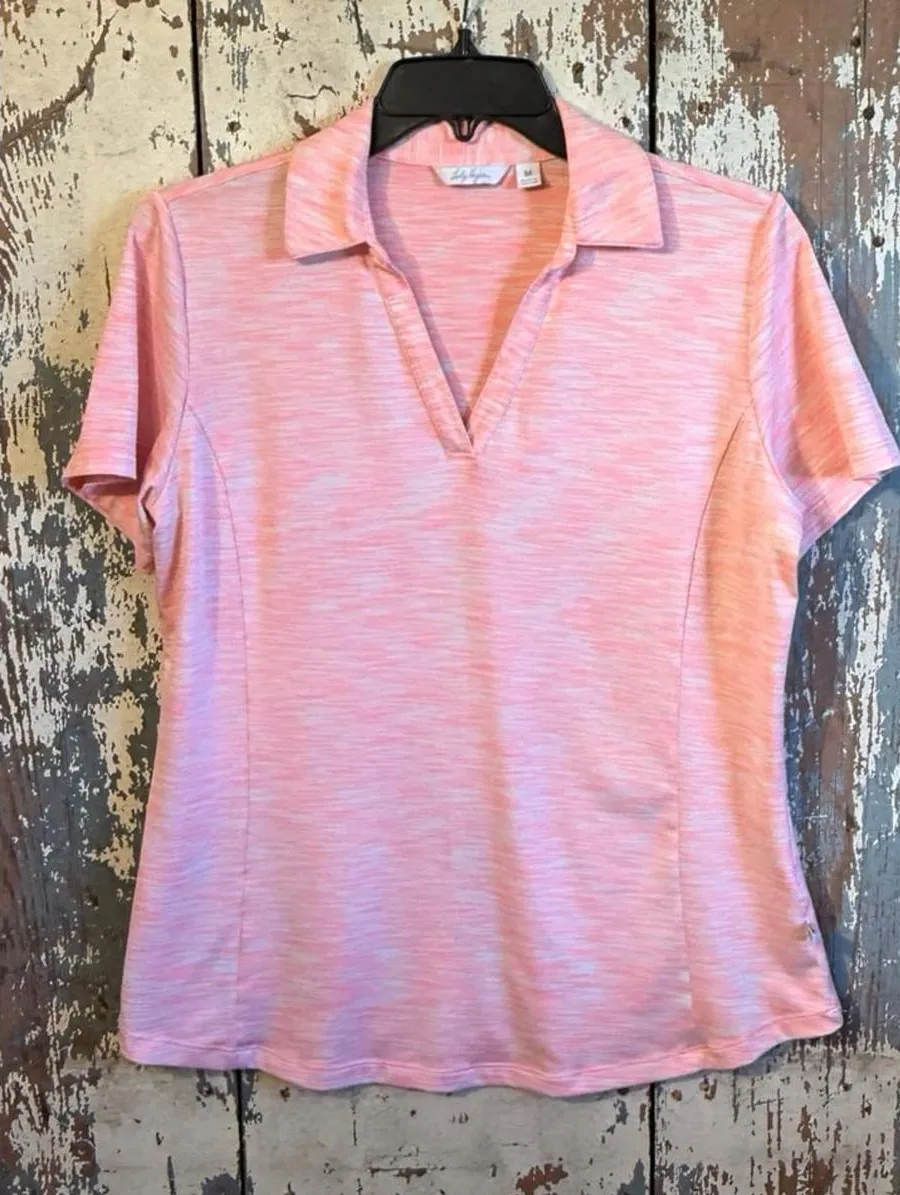 Lady Hagen women's short-sleeve Medium V-neck golf polo shirt pink - $12 - From Valerie