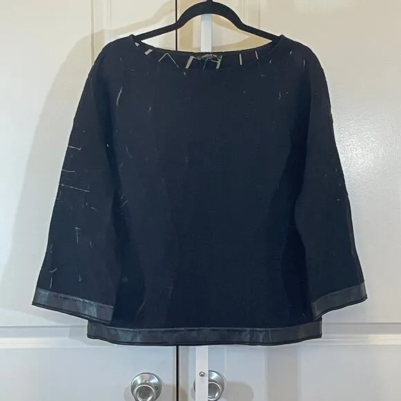Lafayette 148 Cutout and Faux Leather Trim Sweater - Women Size M - Black - Cutouts - 3/4 sleeves... Show more