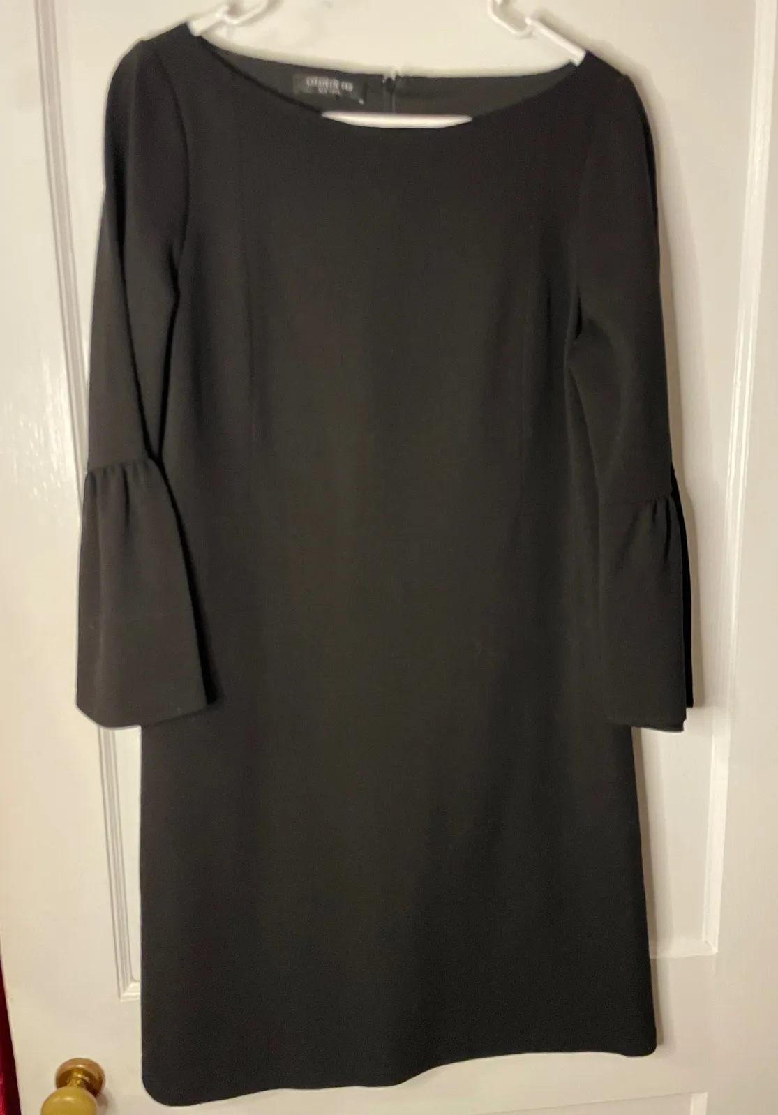 Pit to pit 19.5" Waist measured flat 19" Hips approx 20" Length 37" Style: Sheath, Shift Dress Length: Midi Department: Women Sleeve Length: 3/4 Sleeve Pattern: Solid Occasion: Workwear, Party/Cocktail, Business Material: Viscose, Polyamide, Elastane, Viscose Blend, Polyester Blend Fabric Type: Woven Theme: Classic, Elegant, Workwear Neckline: Boat Neck Season: Fall, Spring, Winter Keywords: Lafayette 148 New York, Black Dress, Sheath Dress, Bell Sleeve Dress, Boat Neck Dress, Women's Dress, Midi Dress, Work Dress, Office Attire, Cocktail Dress, Elegant Dress, Sophisticated, Chic, Professional Attire, Designer Dress T-500