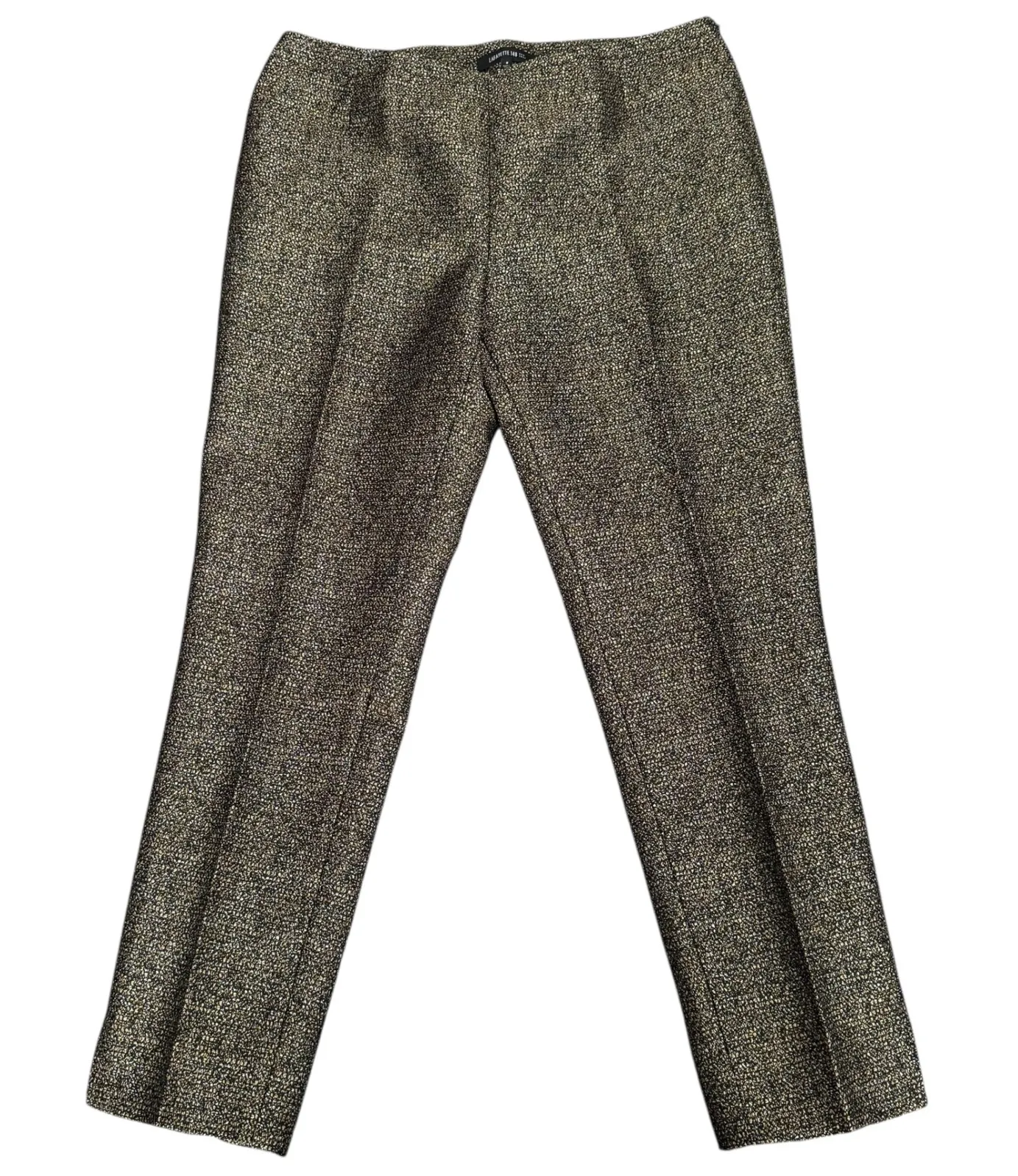 Elevate your wardrobe with these sophisticated Lafayette 148 New York pants. Crafted with a luxurious black and gold tweed texture, these straight-leg trousers offer a timeless silhouette that exudes polished elegance. The subtle shimmer of the metallic threads catches the light beautifully, making them perfect for adding a touch of glamour to any ensemble. Size 8. Great used condition. Measurements: • Waist: 17 in flat lay • Inseam: 27 in Style: Dress Pants Material: Polyester Leg Style: Straight Fabric Type: Tweed Features: Wrinkle Resistant, Stretch Closure: Zip Pattern: Geometric Accents: Zipper Occasion: Business, Workwear, Party/Cocktail Rise: Mid (8.5-10.5 in) Lafayette 148, metallic trousers, straight leg, dress pants, business casual, evening wear, sophisticated, elegant, textured, workwear, cocktail, party, luxury, old money, preppy, classy