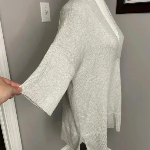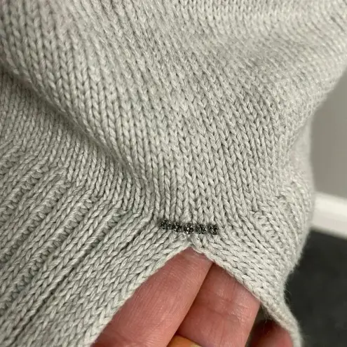 Cotton silk blend Oversized Ribbed trim Dolman sleeve Gray Closet staple Layering piece Small rhinestone detail near bottom hem, please see pictures. Beautiful and classic sweater