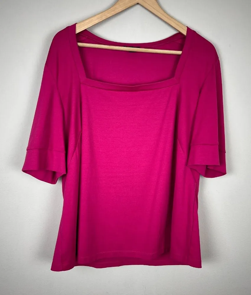 LAFAYETTE 148 Top Womens 2X Pink Knit Short Sleeve Shirt Cotton Square Neck Tee Plus Very good condition! Tiny spot as pointed out. Measurements in photos. Pullover Lightweight Dart seams on bust Versatile - easily dress up or worn casually, capsule wardrobe, minimalist, basic Cotton, spandex blend - machine wash All preowned items have been cleaned. Smoke and pet free home. Thanks for looking!