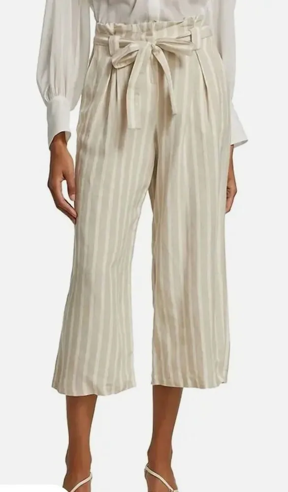 L’Agence Samira Wide Paperbag Pant In Bisque/Ivory Stripe Women’s 8 Measurements- Total Length: 37in... Show more