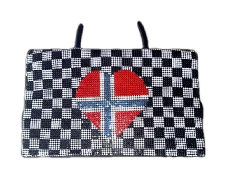 Laila Norway Essence Metal Mesh and black silk style chain crossbody wrists bag Designer Fadhion Flag motive Unique vintage pice Size look over pic Excellent condition ALL SALES ARE FINAL SALES ❤️