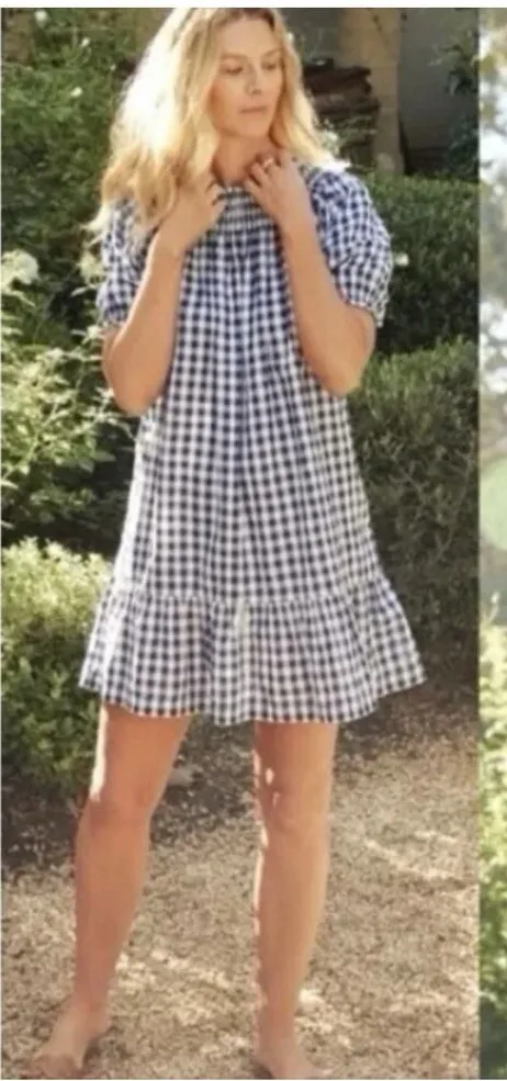 LAKE Veranda Dress XL Smocked Navy White Gingham Plaid Check Cotton Cottage Blue - $75 - From Naomi