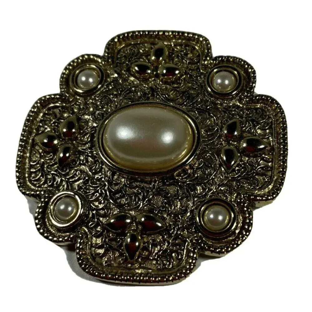 Landau Gold Tone Faux Pearl‎ Large Pin Brooch Vintage - $20 - From Andrea
