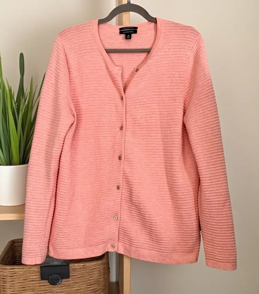 Lands' End Women's Supima Cotton Cardigan Sweater - Peach/Coral - Size M (10/12) Classic ribbed knit... Show more