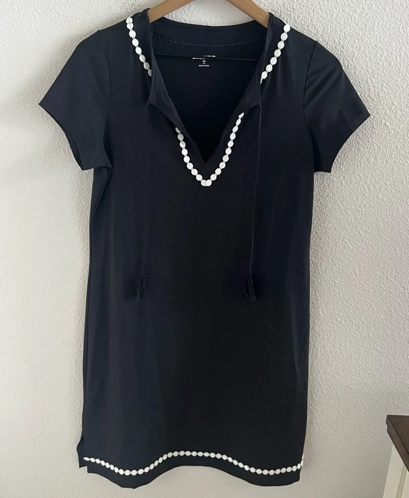 Lands' End Black Nylon Blend Dress White Trim Swim Summer Travel Preowned. Size: XS - Extra Smal... Show more