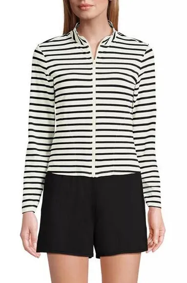 White with black stripe rash guard in a moisture-wicking and cooling fabric. Functional zip front fo... Show more