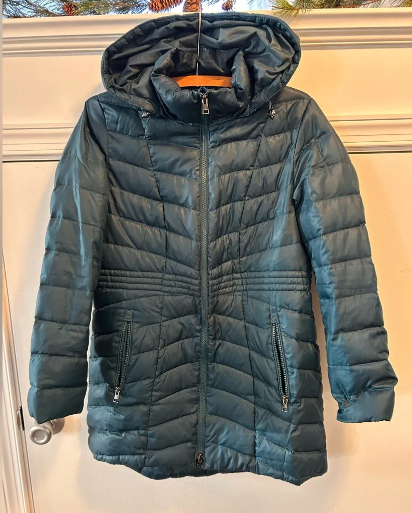 The Lands' End Jeweled Teal Nylon Goose Down Filled Coat in size XS/P is a stylish and warm outerwea... Show more