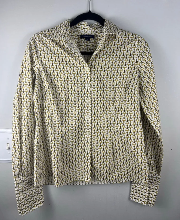 Classic Lands’ End petite blouse featuring an elegant equestrian horse bit print in mustard yellow a... Show more