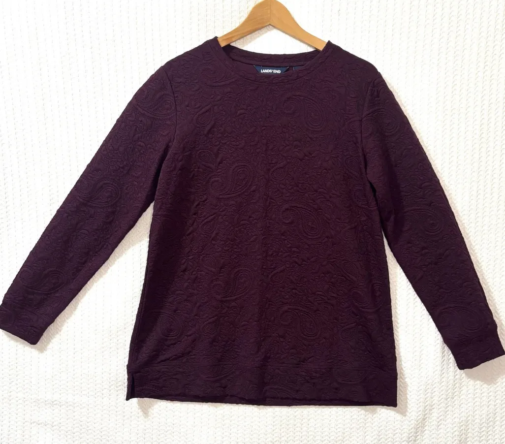The Lands End Purple Paisley Quilted Long Sleeve Top in size M is a casual comfort piece perfect for... Show more