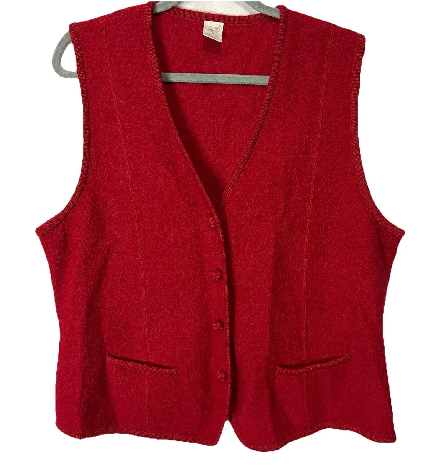 This vintage Lands' End Red 100% Boiled Wool Button Up Vest in Women's size 16P is a timeless piece... Show more