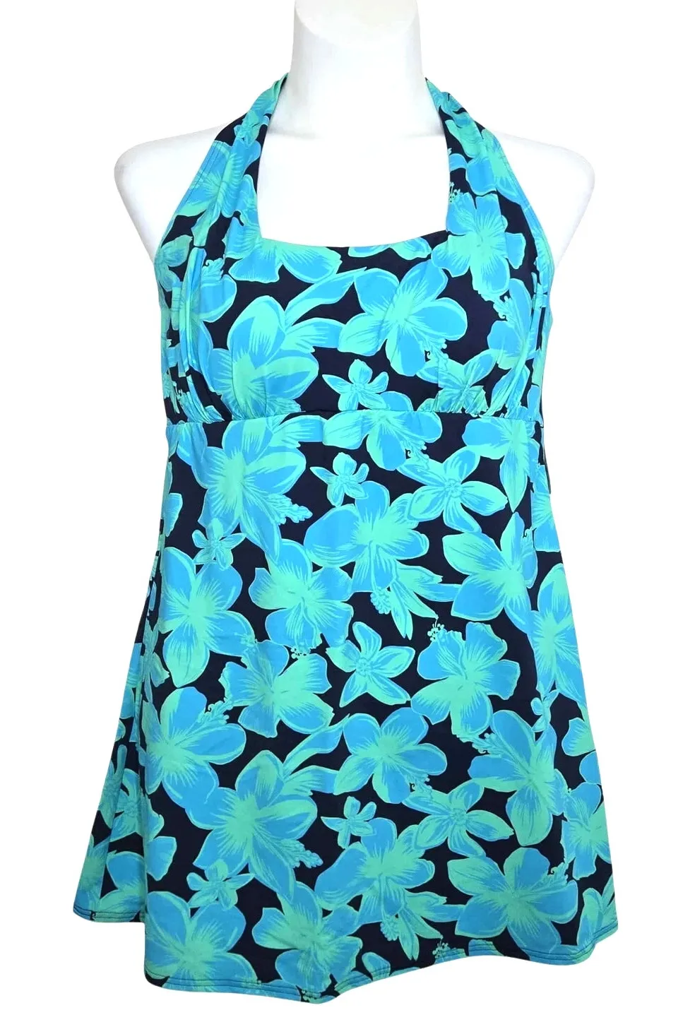 Land's End Women's Square Neck Halter Swim Dress One Piece Swimsuit Size L NWT Blue Size L - $54 New With Tags - From Myra