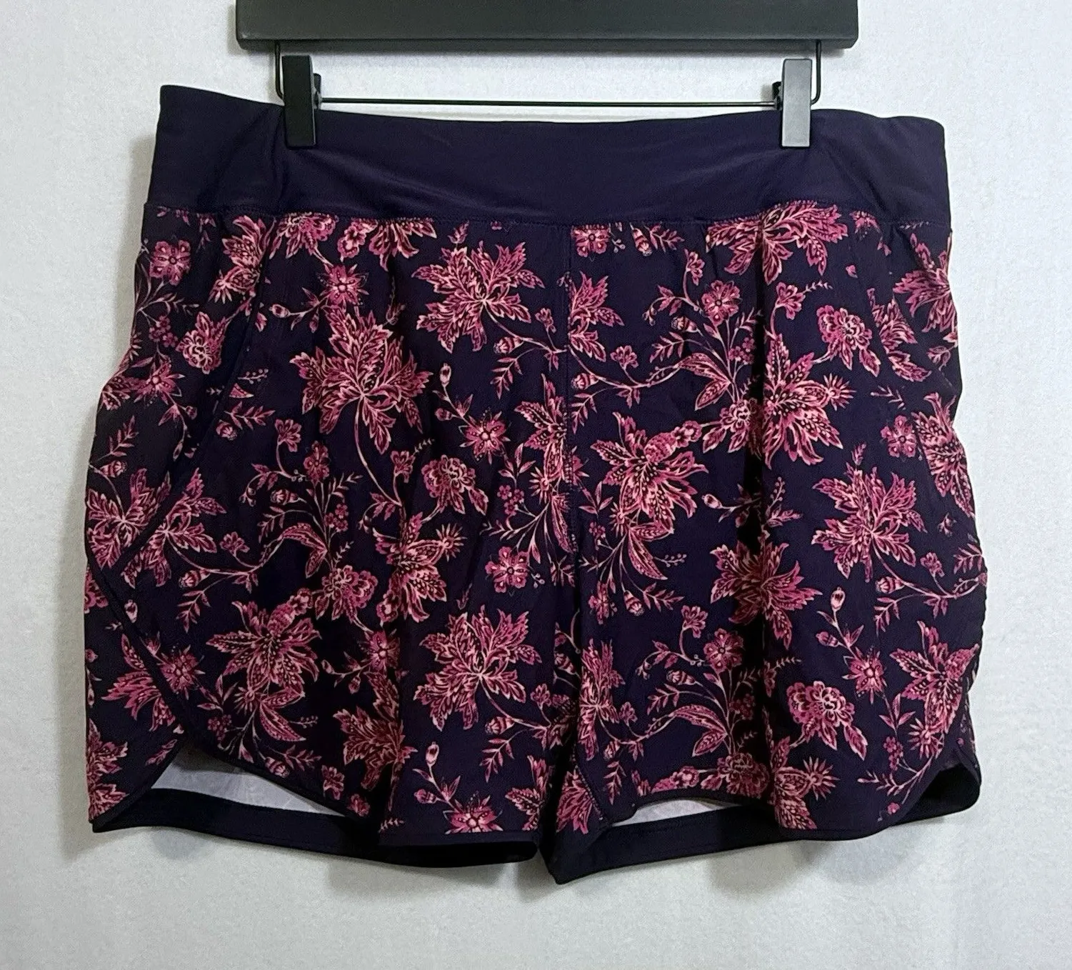Lands End Quick Dry Purple Floral 5" Swim Shorts Women's 16 Pull On Liner Pockets Stretch Modest Bea... Show more