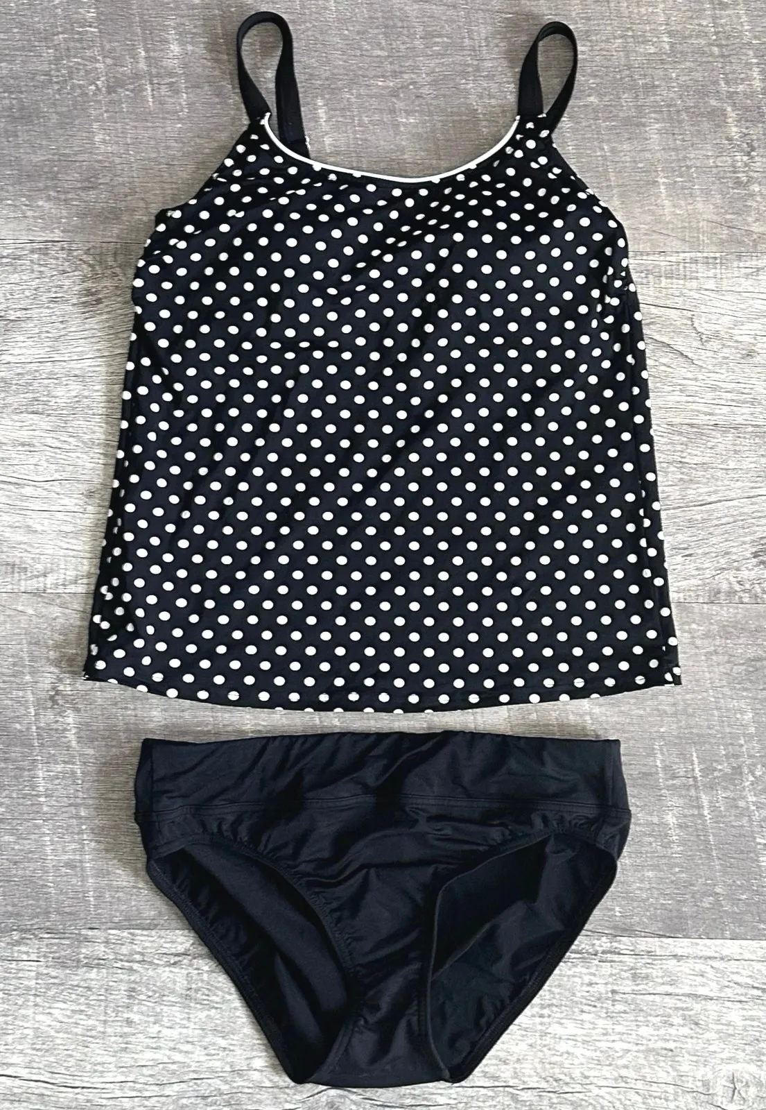 Lands End Womens Polka Dot Tankini Swimsuit 2 Piece Set Tankini Top is a 10L, longer length 80% Nylo... Show more