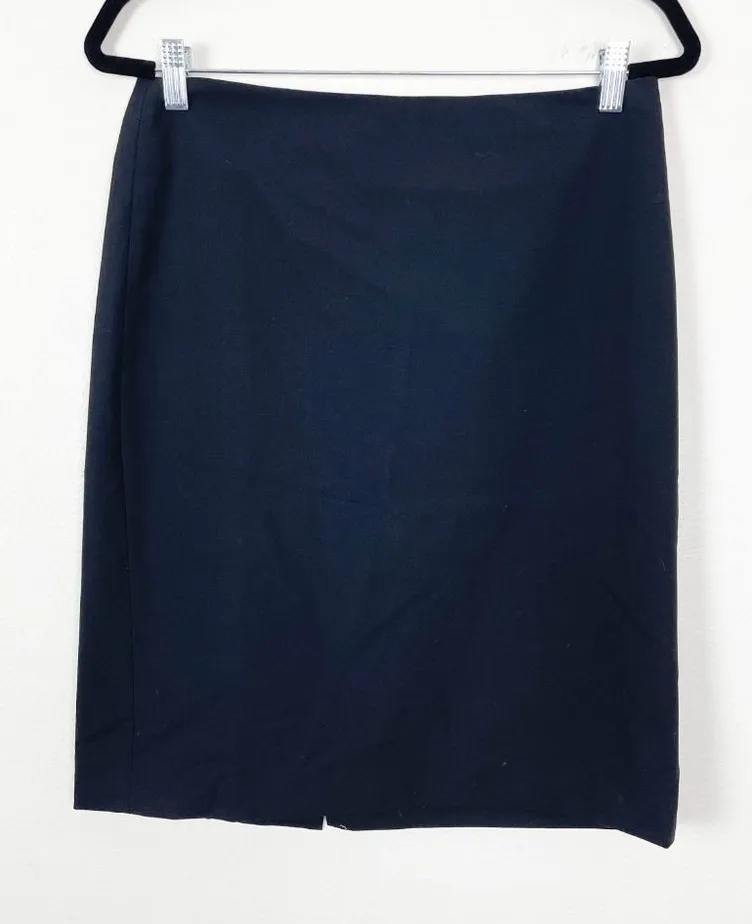 This is a high waisted black straight pencil skirt from Lands' End. It is a classic career wear piec... Show more