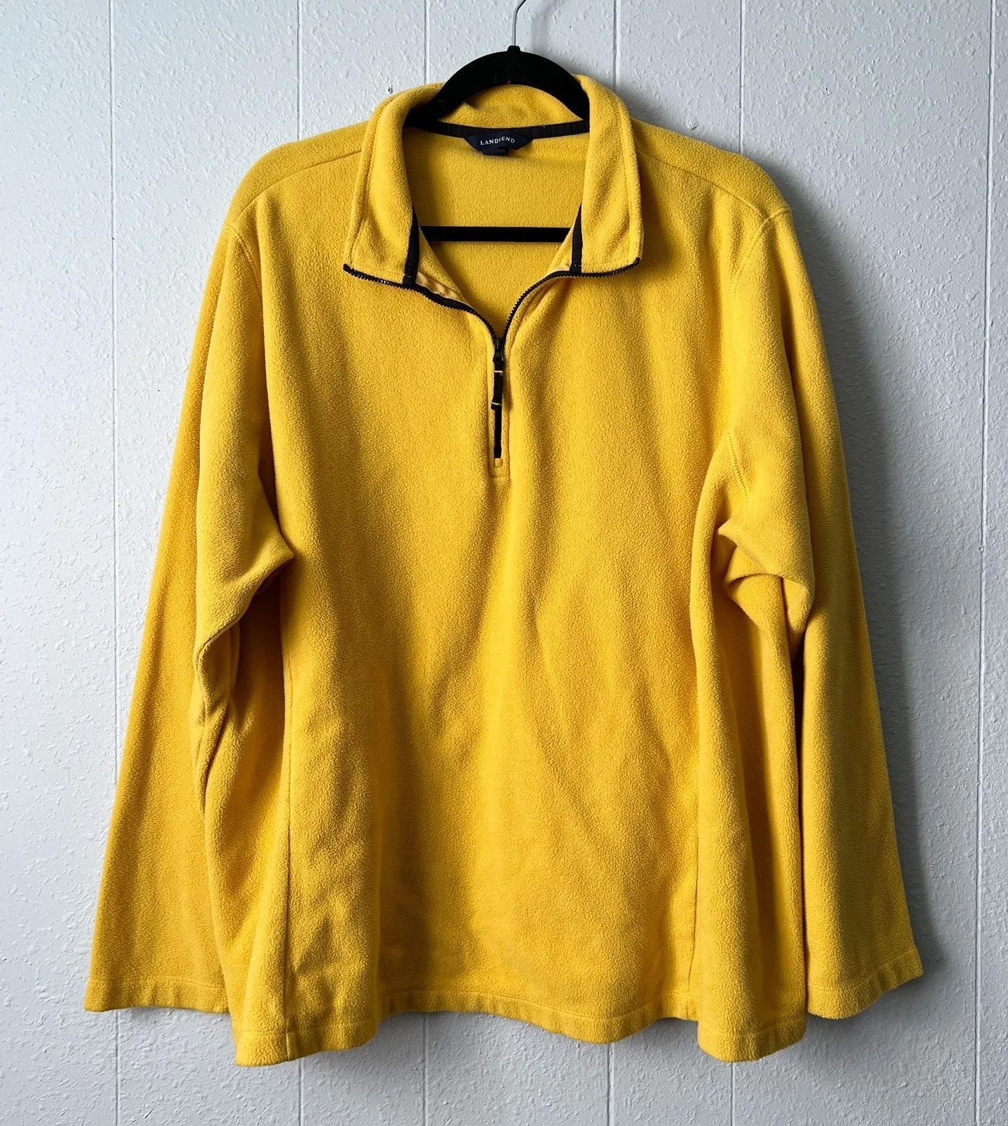 Lands' End women's pullover sweatshirt in mustard yellow. 1/4 zip. Collared. Long sleeves. Soft and... Show more