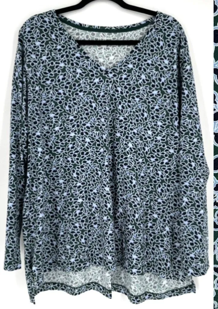 Lands' End Women's Floral V- Neck LS Supima Cotton T-Shirt Blue Size 2X Stretch I have many size 2X... Show more