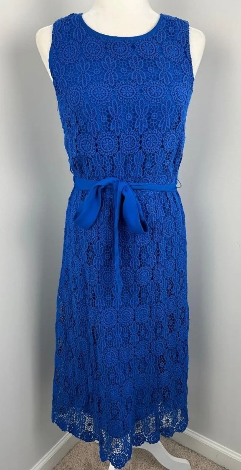 Women's Land's End lace dress, size 4. Lace overlay with full lining. Belted Total length: 44" Che... Show more
