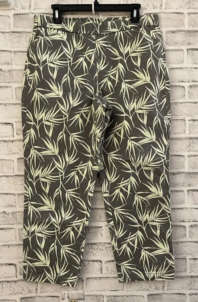 Women’s. Lands’ End. Gray/green pants with yellow wispy leaf print. Cropped. 25” inseam. Mid rise. E... Show more